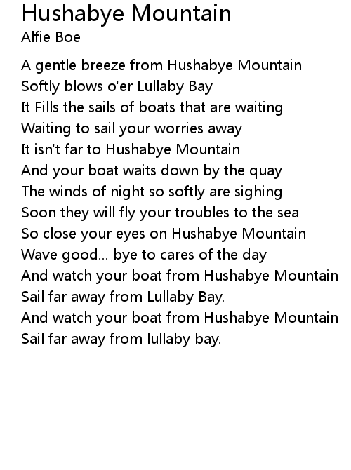 So close your eyes on Hushabye Mountain |