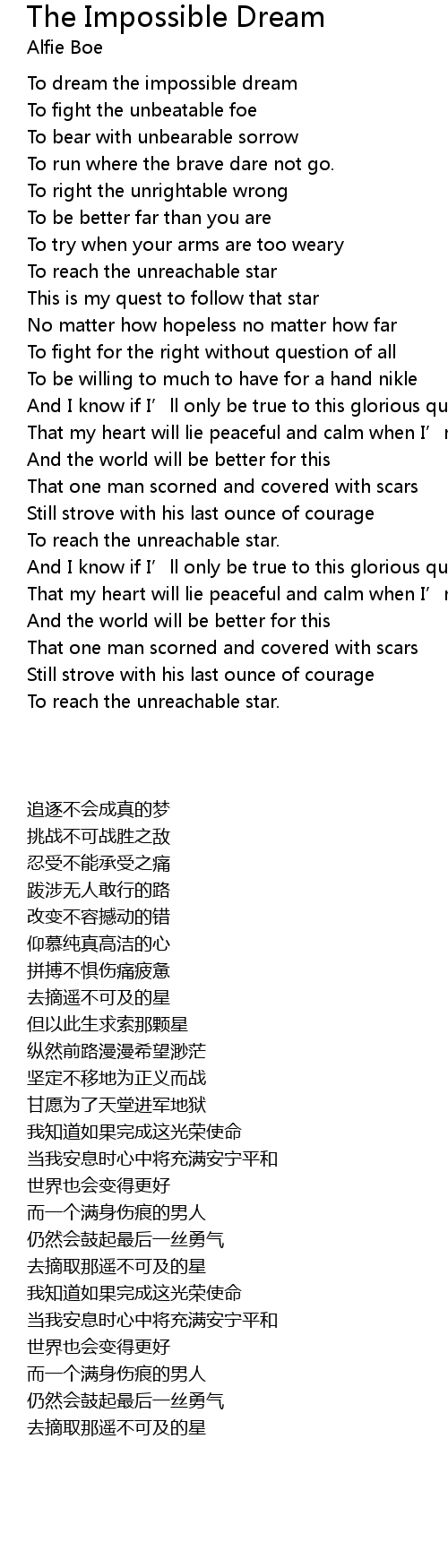 | [00:45.28] | This is my quest to follow that star |