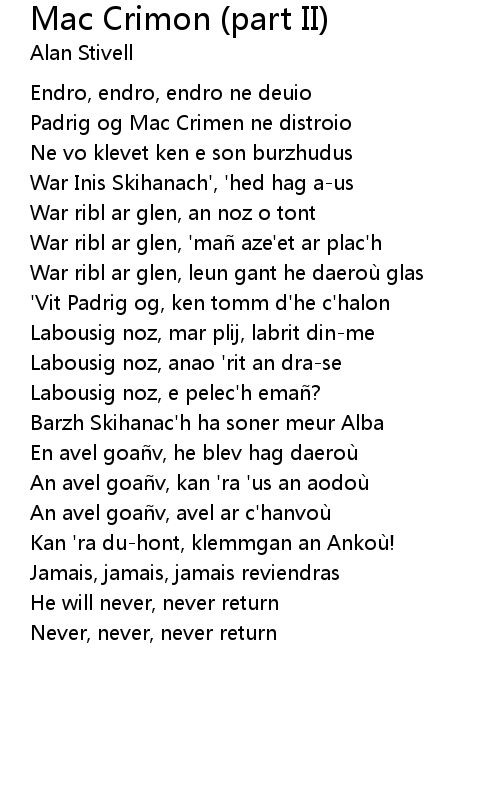 | Song | Mac Crimon (part II) |