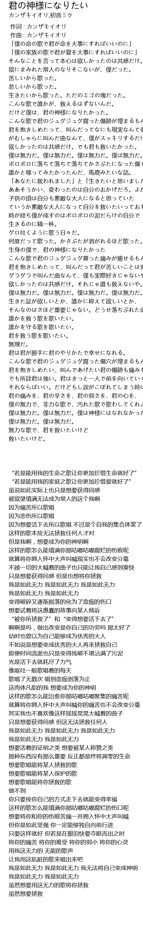 | [00:38.02] | だけど僕は、君の神様になりたかった。 |