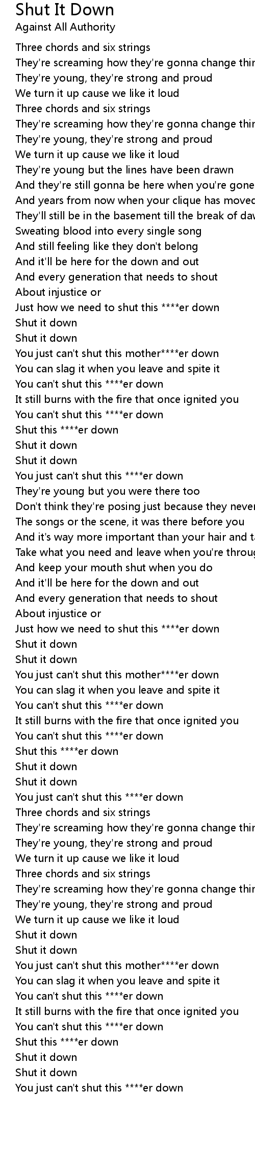 You just can't shut this mother****er down |