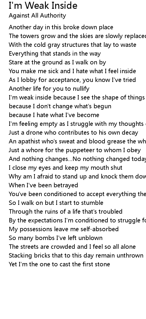 I'm weak inside because I see the shape of things to come |
