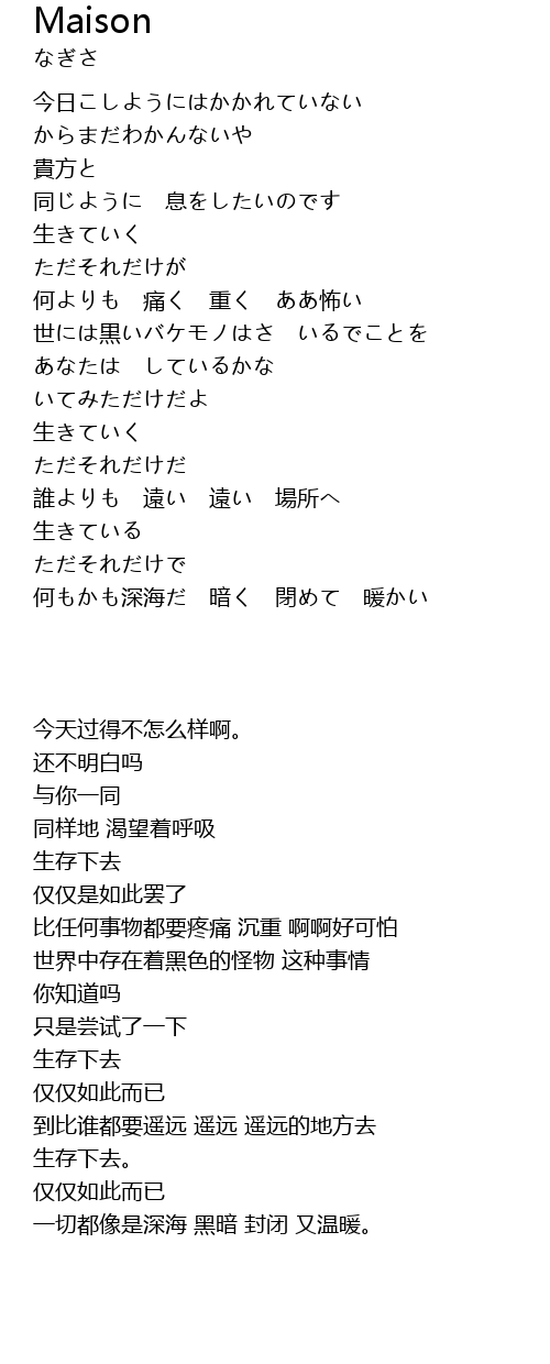 何もかも深海だ 暗く 閉めて 暖かい |