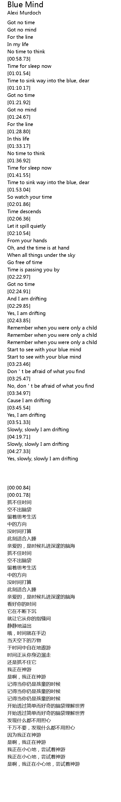 | [03:20.02] | Start to see with your blue mind |