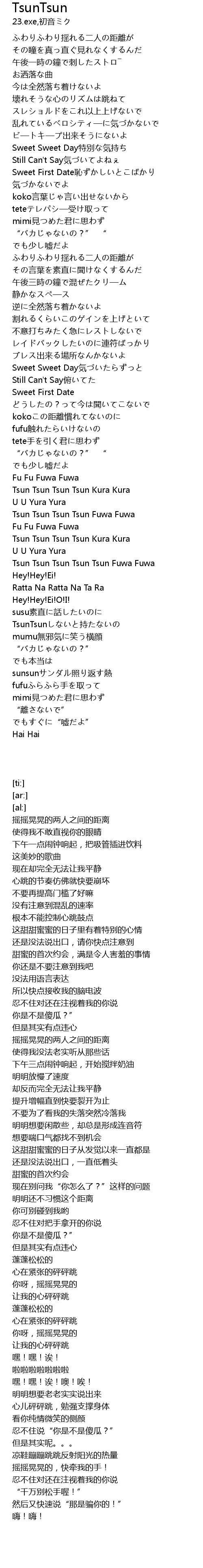 | [03:03.14] | Tsun Tsun Tsun Tsun Tsun Fuwa Fuwa |