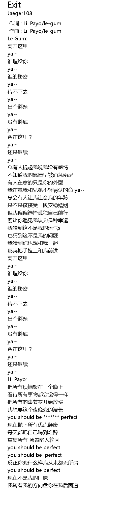 | [00:00.000] | 作词 : Lil Payo/le-gum |