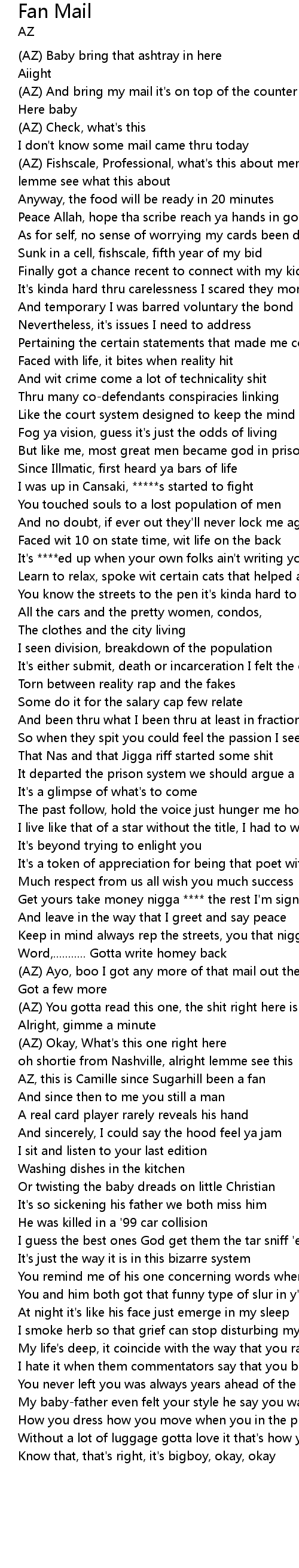 | (AZ) Ayo, boo I got any more of that mail out there | |