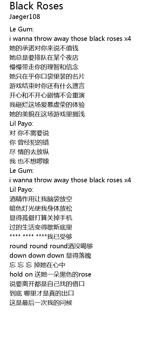 | [00:11.74] | i wanna throw away those black roses x4 |