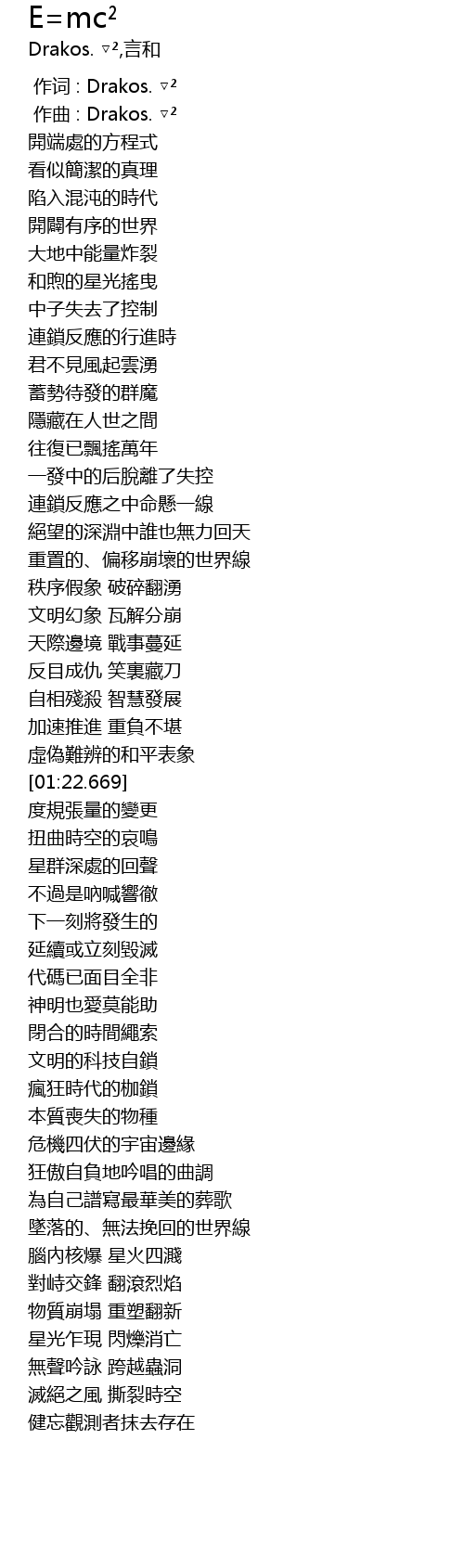 | [00:01.000] | 作曲 : Drakos. ▽² |