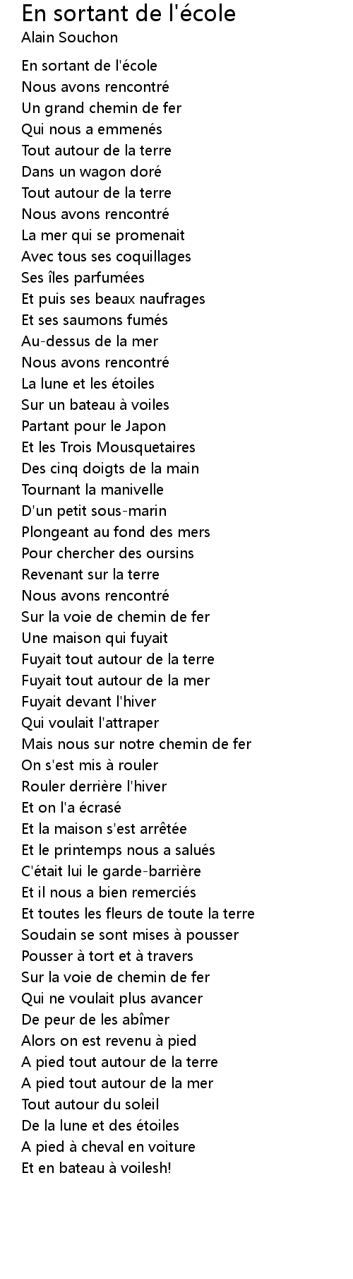 | Song | En sortant de l'école |