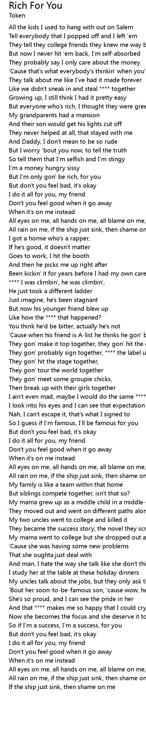 But I'm only gon' be rich, for you |