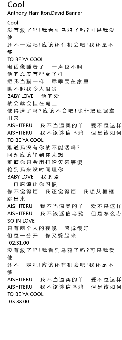 | [00:43.00] | BABY LOVE 他 的 爱 |