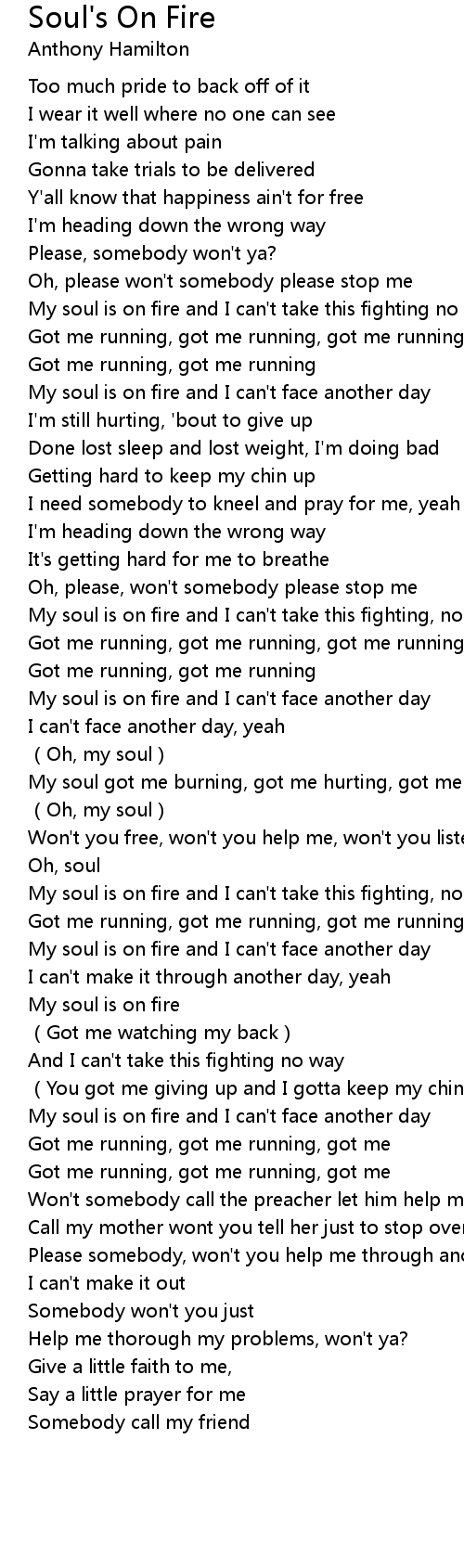 | [02:45.78] | My soul is on fire and I can't take this fighting, no way |