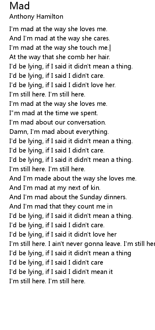 I'm mad at the way she loves me. |