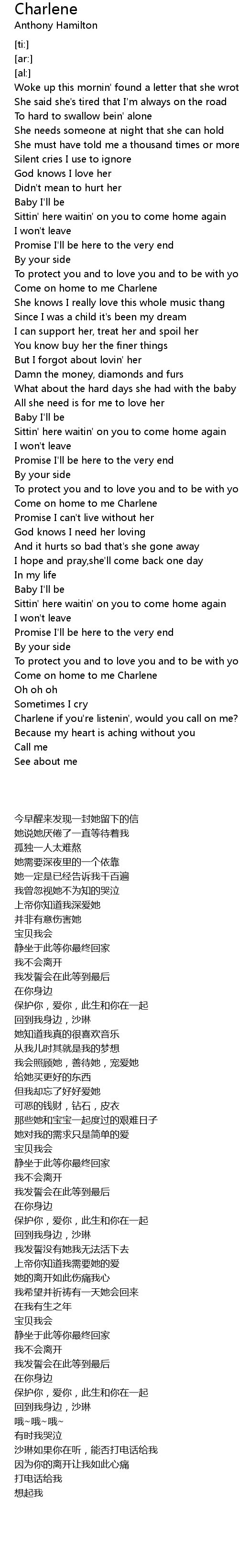Come on home to me Charlene |
