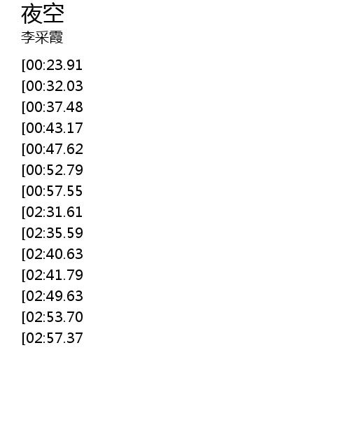 | [03:23.36][02:35.59][01:07.24] | màn cháng yè kōng xīng yuè wú zōng |