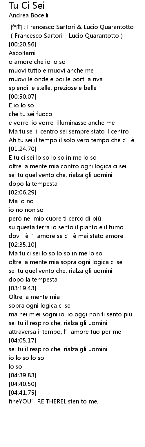 | [02:38.29] | Ma tu ci sei lo so lo so in me lo so |