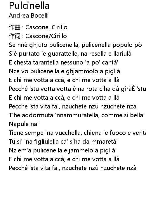 | Song | Pulcinella |