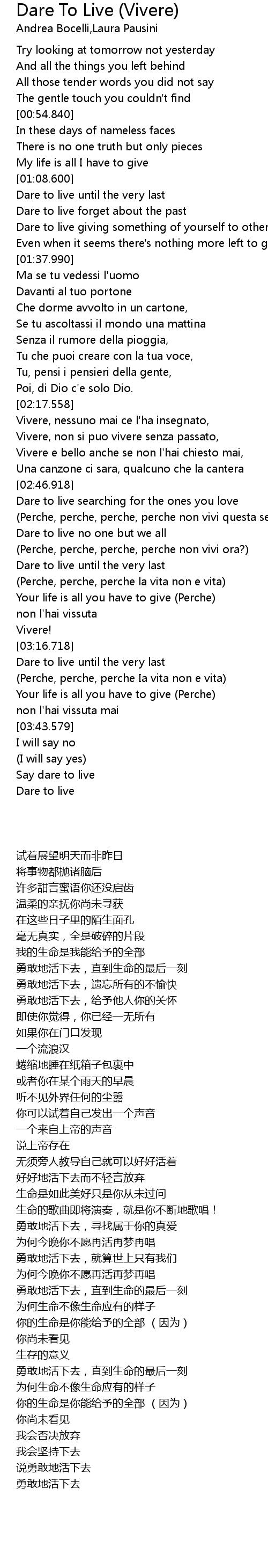 | [03:53.398] | Say dare to live |