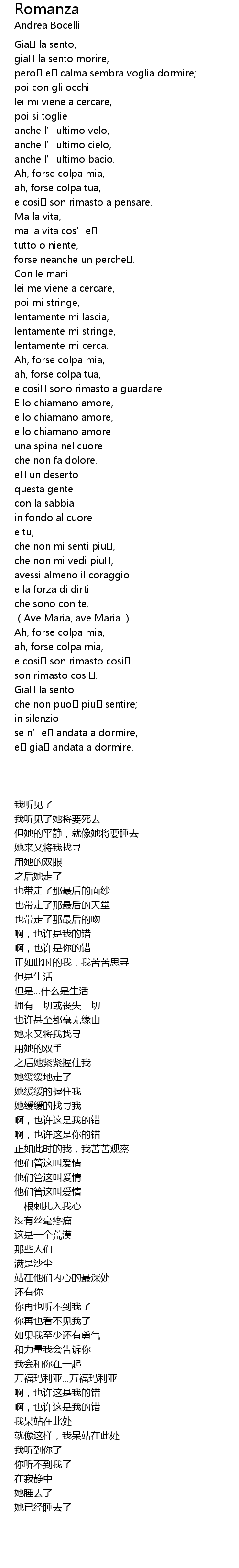| [00:12.960] | già la sento morire, |