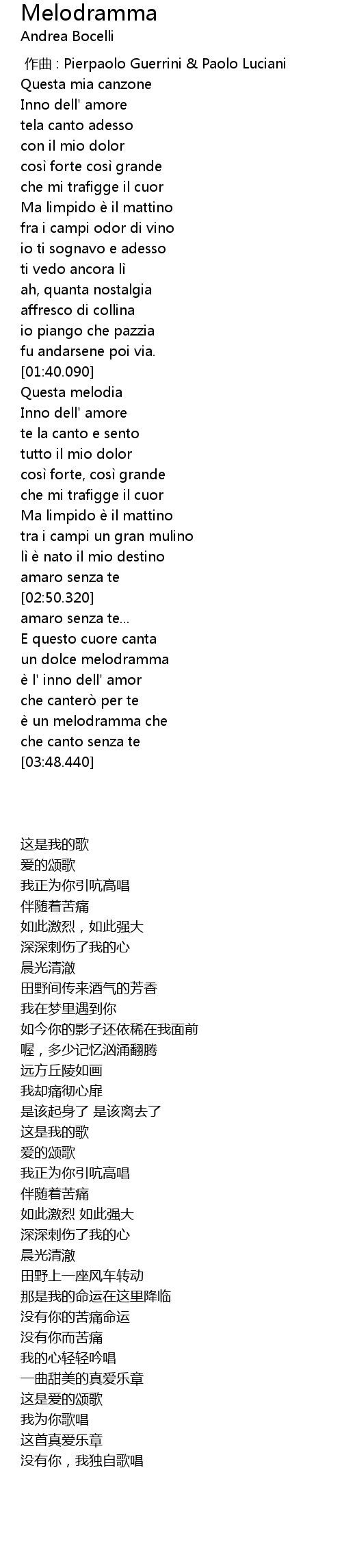 | [03:33.170] | e un melodramma che |
