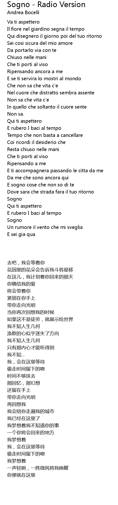 Dove sara che strada fara il tuo ritorno |