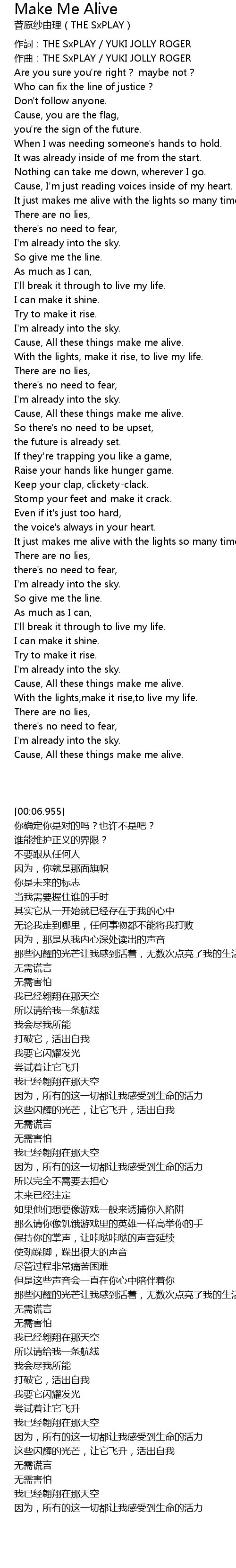 | [00:02.631] | 作詞:THE SxPLAY / YUKI JOLLY ROGER |