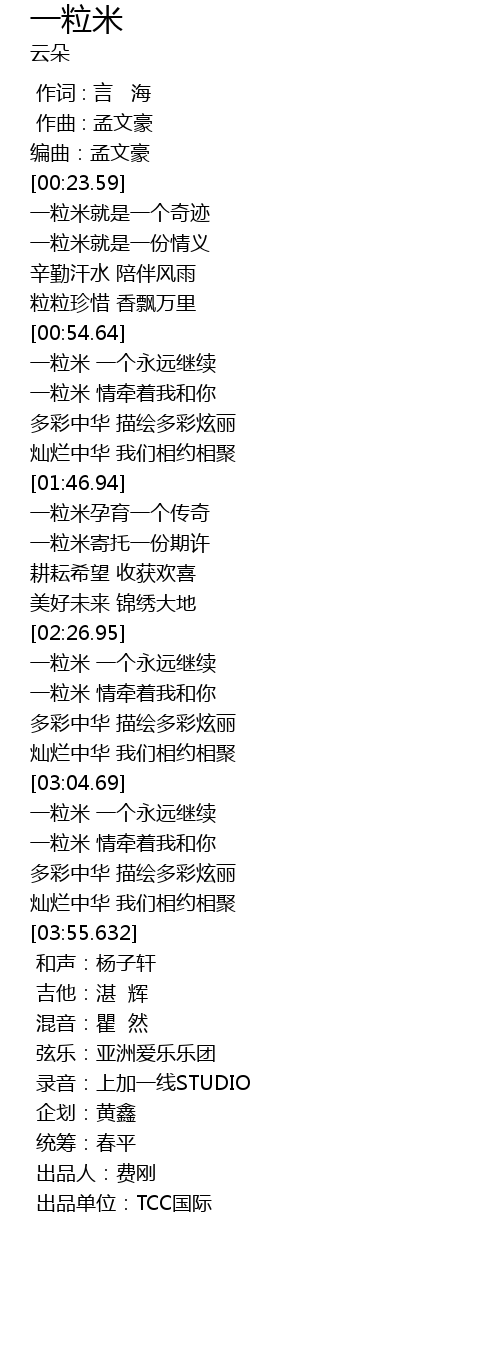 | [02:00.09] | 一粒米孕育一个传奇 |