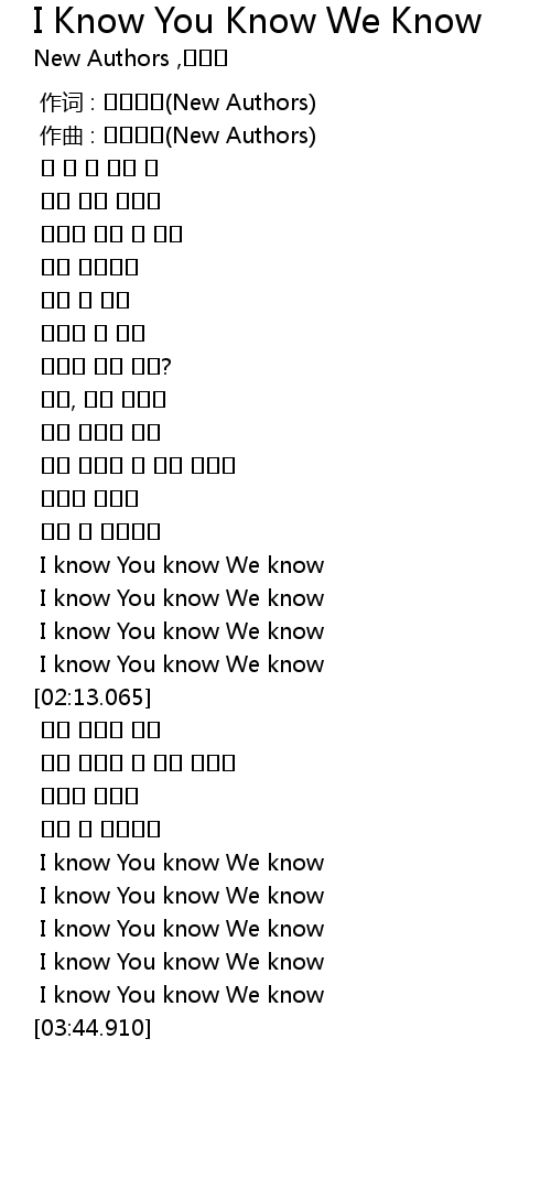 I Know You Know We Know Lyrics