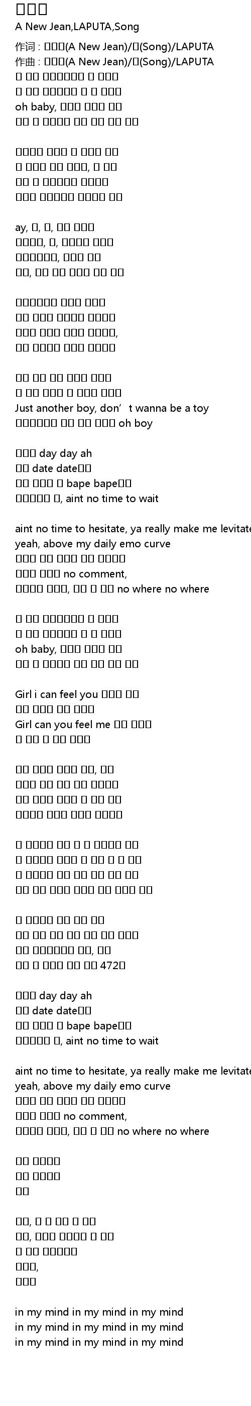 作词 : 어뉴진(A New Jean)/송(Song)/LAPUTA |