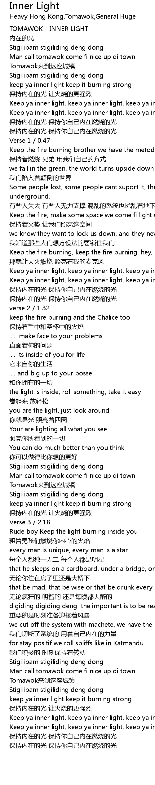 | Keep ya inner light, keep ya inner light, keep ya inner light burning. | |