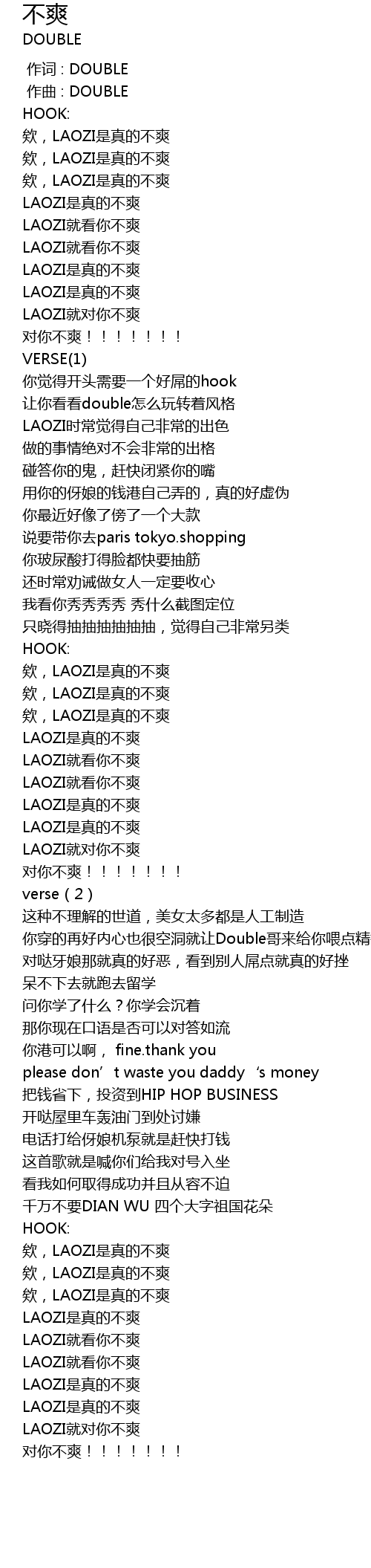 | [01:59.786] | āi, LAOZI shì zhēn de bù shuǎng |