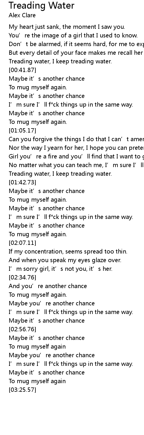 | [00:34.45] | Treading water, I keep treading water. |