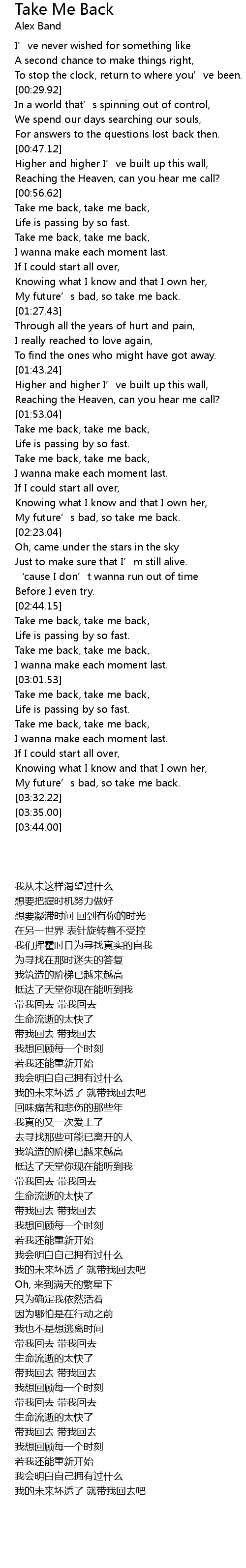 | [00:24.64] | To stop the clock, return to where you' ve been. |