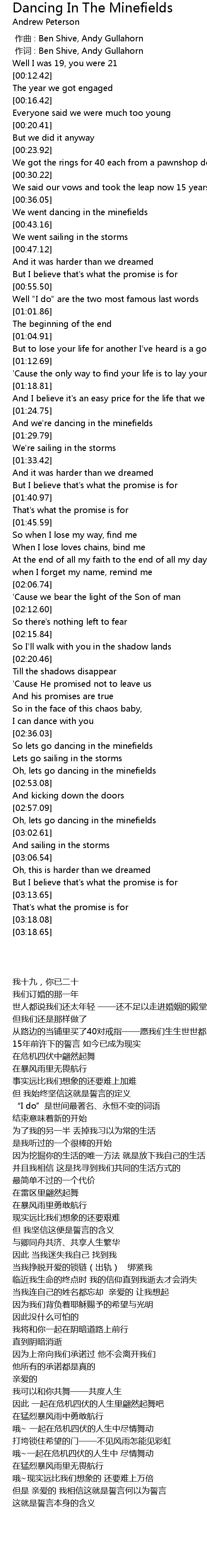 | [00:39.17] | We went dancing in the minefields |