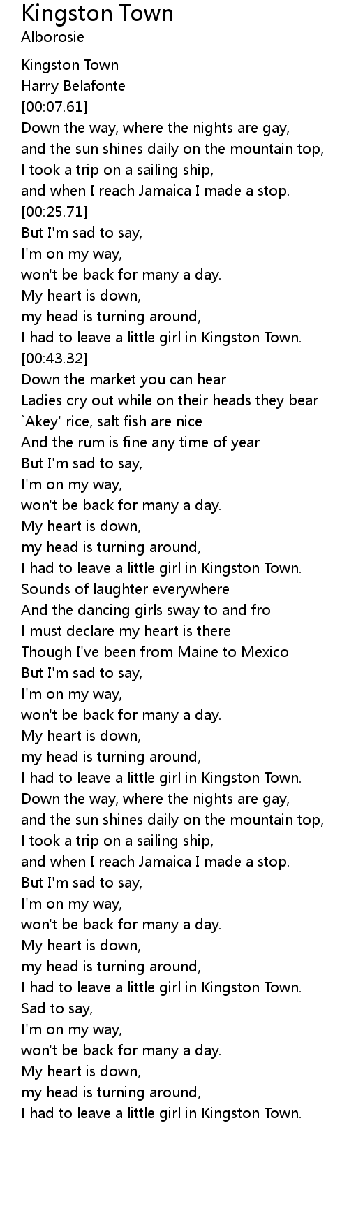I had to leave a little girl in Kingston Town. |