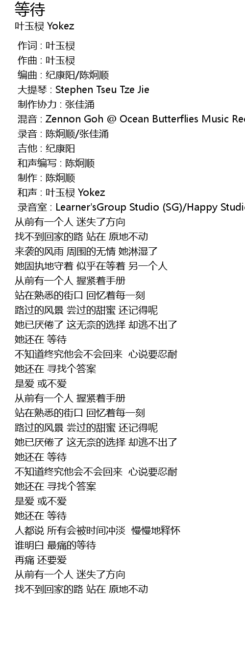 | [00:05.000] | 混音 : Zennon Goh @ Ocean Butterflies Music Recording Studio |
