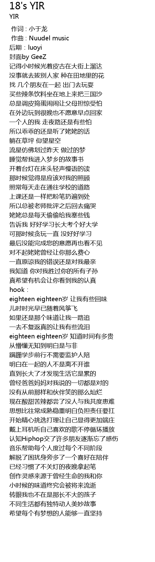 | Song | 18's YIR |