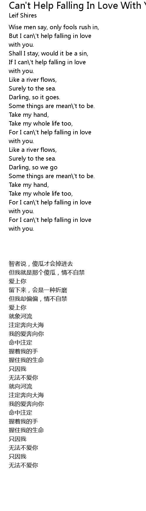 But I can\'t help falling in love |