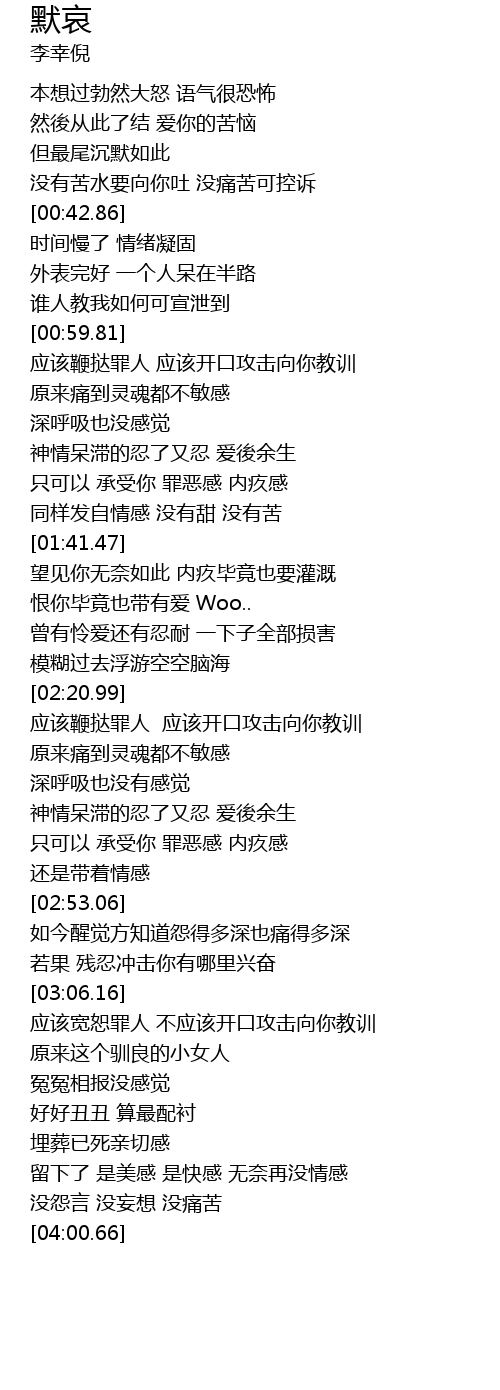 | [02:38.94] | 神情呆滞的忍了又忍 爱後余生 |