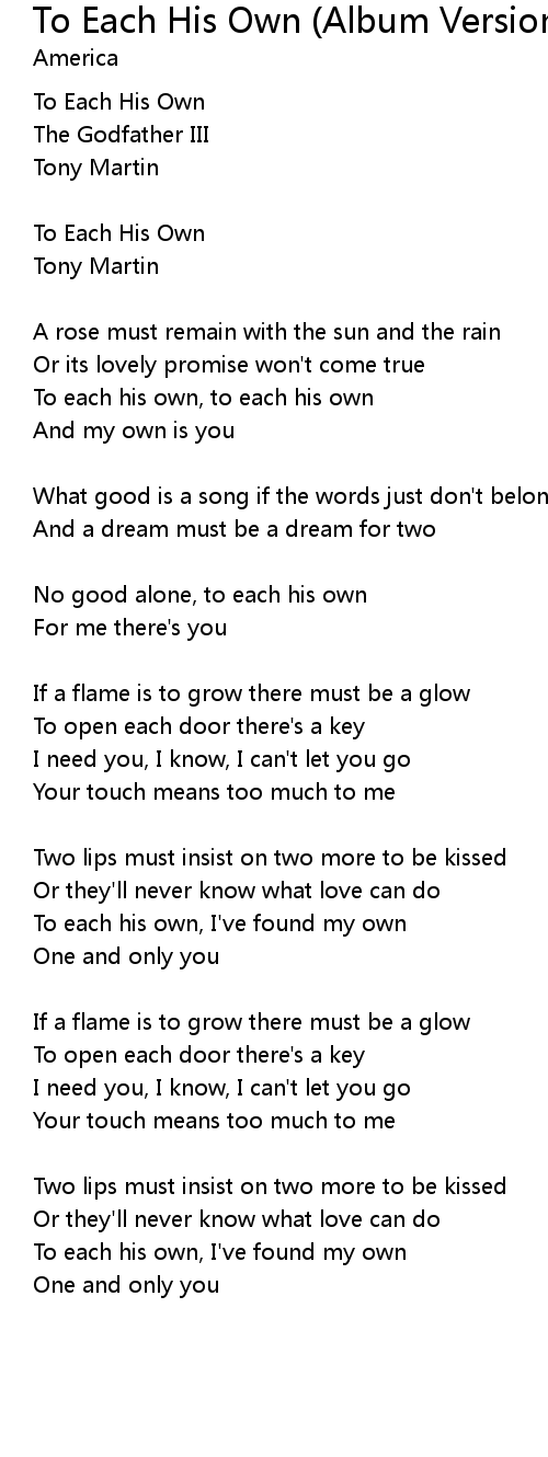 To each his own, to each his own |