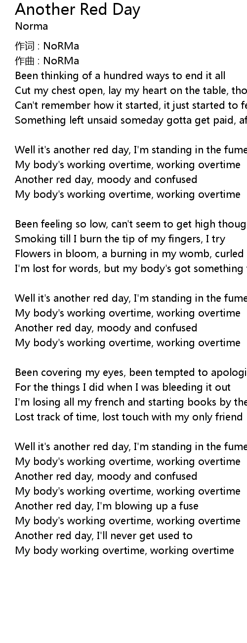 | Flowers in bloom, a burning in my womb, curled up in bed all day | |