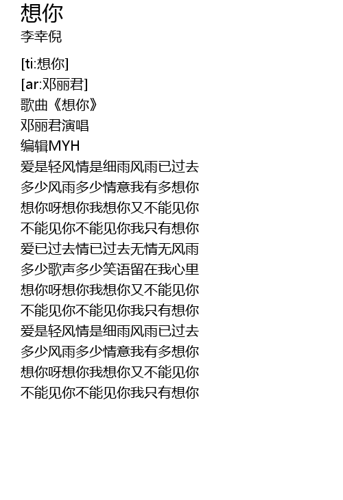 | [01:32.348] | 想你呀想你我想你又不能见你 |