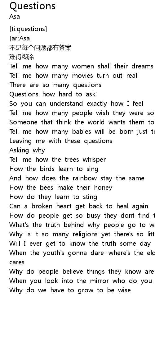 | [00:38.61] | Questions how hard to ask |