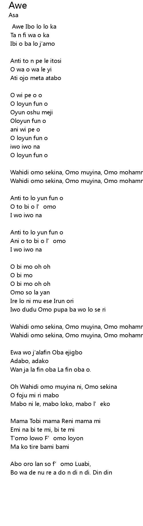 | Oh Wahidi omo muyina ni, Omo sekina | |