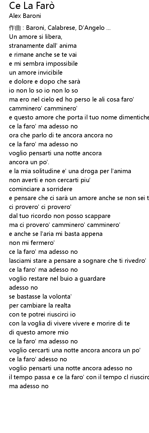 | 作曲 : Baroni, Calabrese, D'Angelo ... | |