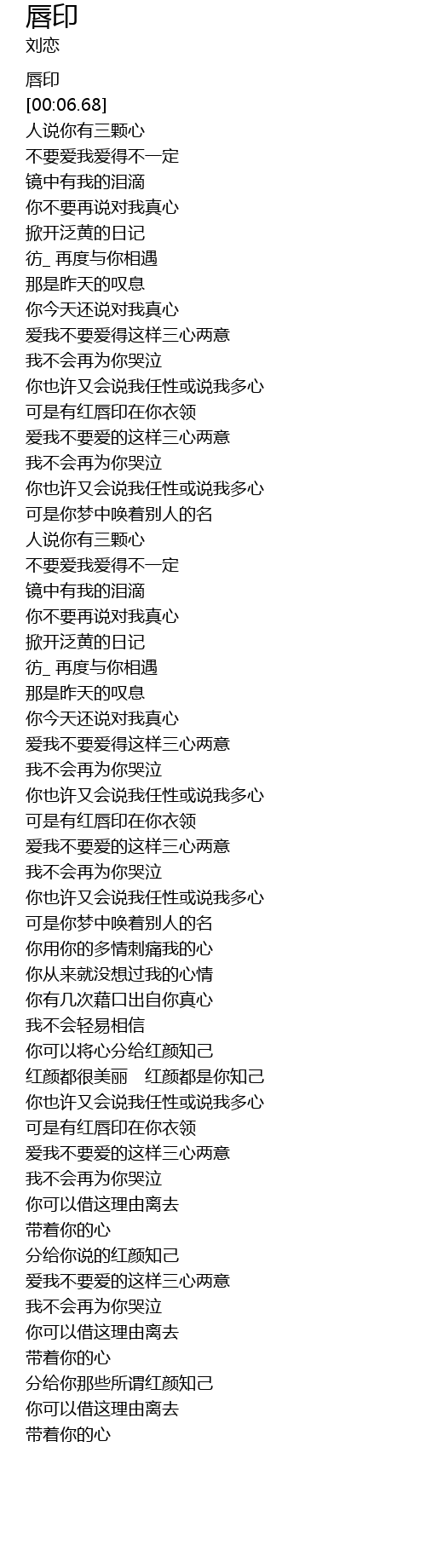 | [01:11.23] | kě shì yǒu hóng chún yìn zài nǐ yī lǐng |