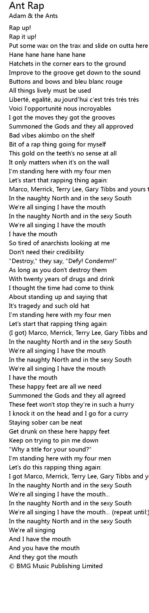 | Song | Ant Rap |