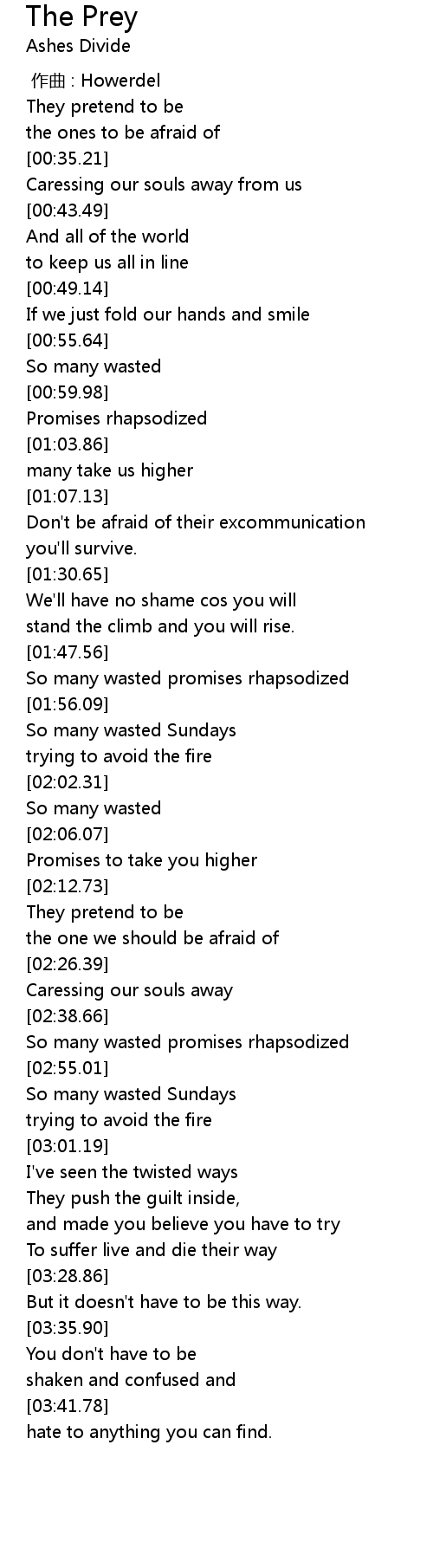 | [02:48.88] | So many wasted promises rhapsodized |