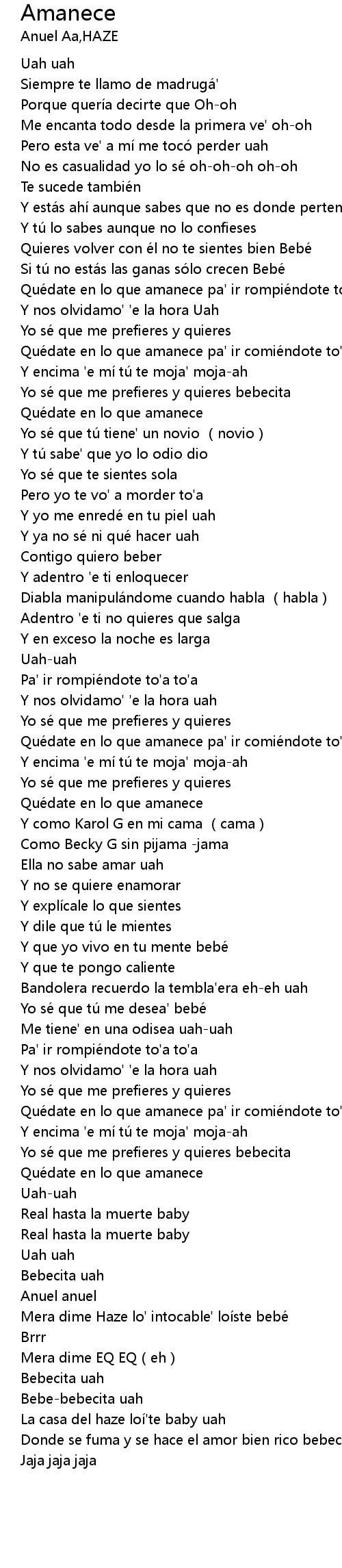 | [00:41.54] | Quédate en lo que amanece pa' ir comiéndote to'a -o'a |
